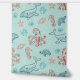 Under the sea themed peel and stick wallpaper for the nursery with a pattern of whales, seahorses, octopuses, starfish, turtles and conches in shades of red and blue. Decorate the nursery with this ocean animal wallpaper in red and blue with ocean life in a hand drawn art style. Red and blue ocean life themed wallpaper for the nursery in a practical peel and stick version.