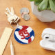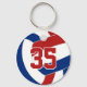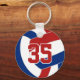 This team colours volleyball keychain features the image of a red, blue and white volleyball on the front and a simple white volleyball on the back - personalise with the athlete's jersey number on the front and name and team name on the back - by katz_d_zynes