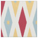 This fun mid-century modern fabric features 3 large diamonds with 2 stars in the centre, in a combination of the colours red, blue, and yellow. This would make a colourful addition to your sewing project.