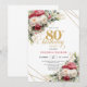 Red blush roses 80th birthday invitation with gold