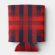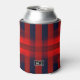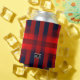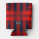 Red Bokeh Buffalo Plaid Monogram Can Cooler