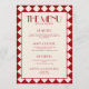Make a bold statement at your wedding reception with this striking red and cream menu card featuring a retro chequerboard design. With a perfect balance of vintage flair and modern fun, this funky wedding dinner insert sets the tone for a vibrant and unforgettable celebration.