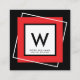 Red Bold Geometric Square Frame Monogram Square Business Card