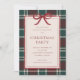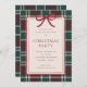 Red Bow Burgundy Green Plaid Christmas Party Invitation