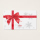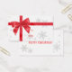 Customisable Christmas / Holidays gift tags with red bow and ribbon on white background with snowflakes and season's personalised greeting on the back.