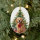 Red Bow Golden Retriever Dog Christmas Ceramic Ornament