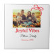 Red bow joyful Vibes add family name photo christm Ceramic Tile