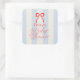 Red Bow & Pale Blue Stripes Baby Shower Square Sticker