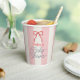 This coquette baby shower paper cup features a red bow on a cream background with pink stripes. Personalize it for your needs. You can find matching products at my store.