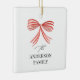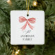 Red bow ribbon Script Family holiday photo Ceramic Ornament