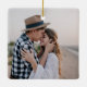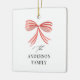 Red bow ribbon Script Family holiday Christmas personalized photo ornament