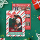 Personalize with jolly and fun photo Christmas card with a Christmas themed photo on the front, and 12 photos on the back for a year in review collage! The card features a charming design with hand-drawn elements for a whimsical look. Personalize with a family photo in an arch shape against peppermint stripes in red and green. Merry Christmas is written beneath on a simple hand-drawn ribbon, avoiding perfect lines for a more hand-made vibe even if the cards are printed.