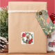 On these Holiday correspondence or gift package stickers, an adorable little Yorkshire Terrier Dog sits at the centre of a beautiful poinsettia and green holly wreath. The Yorkie wears a red jewelled bow. Festive!