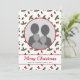 Red Bows And Holly Plants Pattern Custom Photo Holiday Card