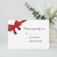 Customise the festive Red Bows Winter Wedding Response RSVP Card with your December marriage reply date. This elegant custom wintery red and white bows design resembles a wrapped Christmas present.