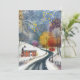 Whimsical red brick house in snow illustration style image on a flat greeting card. Text can be changed to your preferred greeting. AI assisted graphic purchased with commercial use. Artwork: RedHeronLighthouse