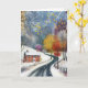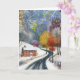 Whimsical red brick house in snow illustration style image on a greeting card. Text can be changed to your preferred greeting. AI assisted graphic purchased with commercial use. Artwork: RedHeronLighthouse