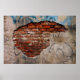 Red Brick Under Graffiti Laced Cement Wall Poster