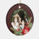 Red Brown Circle Christmas Photo Poinsettia Floral Ceramic Ornament
