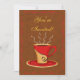 This red and tan stylised coffee cup on a brown background makes a great invitation for your coffee event. This design is part of a collection of coffee art designs will delight coffee lovers. This collection of original art features whimsy coffee, cappuccino and espresso coffee cups in bold and vibrant colours of red, orange, gold, brown, green and black. This invitation is fully customisable for personalising to include all the information you need for your party, luncheon, shower, reunion, organisation meeting, or other event. See the matching envelope and stamps for added style.