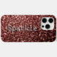 Red brown faux glitters sparkles Your text iPhone 15 Case. Beautiful girly glamourous shiny glitters sparkles design. Photo of sparkles glitter! Faux sparkles!