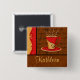 A coffee lover will enjoy this name badge pin featuring a whimsy red and gold coffee cup on a brown script background with assorted coffee words and terms. This is great to wear for meetings or for work with coffee. The design features steaming coffee with a whimsy brown and gold border with a brown area for personalisation below the art. Customise with a name, event, or message. This art is from fabric designer Phyllis Dobbs and features one of several designs in this store. These coffee art designs will delight coffee lovers or baristas. This collection of original art features whimsy coffee, cappuccino and espresso coffee cups in bold and vibrant colours of red, orange, gold, brown, green and black. There are multiple images in this collection and they all blend together on the products. Fully customisable.