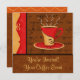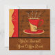 This invitation is great for coffee events, meetings or parties. It features a whimsy red and gold coffee cup on a brown script background with assorted coffee words and terms. The design features steaming coffee with a whimsy brown and gold border with a brown area for personalisation below the art. Customise with a name, event, or message. The back is fully customisable for your event. This art is from fabric designer Phyllis Dobbs and features one of several designs in this store. These coffee art designs will delight coffee lovers or baristas. This collection of original art features whimsy coffee, cappuccino and espresso coffee cups in bold and vibrant colours of red, orange, gold, brown, green and black. There are multiple images in this collection and they all blend together on the products. Fully customisable.