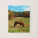 Red Brown horse, Teal Blue sky Jigsaw Puzzle