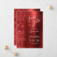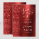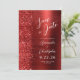 This elegant modern wedding save the date card features a red brushed metal background decorated with faux diamond glitter. The customizable text combines white script and sans serif fonts. The reverse side repeats the red brushed metal and glitter design.