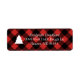 A pattern of black buffalo check plaid and classic red feels fresh and modern for the holidays with a solid black Christmas tree graphic and custom return address text.