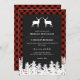 Red Buffalo Check Rustic Deer Bucks Wedding Invitation