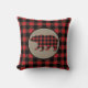 The background on this attractive throw pillow is a red and black buffalo plaid pattern. At the centre is a tan circle banner with a matching red and black plaid bear image. The back of this reversible pillow has the same buffalo plaid print, but not the bear design. Be sure to see the matching products in our store.