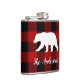 Red Buffalo Plaid & Bear | Personal Name Gift Hip Flask