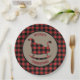 The border of these festive Holiday paper plates is a red and black buffalo plaid pattern. The interior of the plate has a tan circle banner with a matching red and black plaid Christmas sleigh image. Perfect for any seasonal gathering. Be sure to see the matching products in our store.