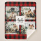 Red Buffalo Plaid & Collage Photo With Initial Sherpa Blanket
