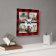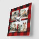 Red Buffalo Plaid & Collage Photo With Initial Square Wall Clock