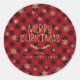 Red Buffalo Plaid Gold Snowflake Merry Christmas Classic Round Sticker