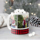 A festive holiday photo mug featuring a three-photo collage above a classic red and black buffalo plaid band. The iconic lumberjack plaid paired with custom photos creates a cozy, cabin-inspired holiday feel. All photos are fully customizable — showcase family portraits, kids, siblings, or pets for a keepsake Christmas gift that grandparents and loved ones will reach for all winter long.
