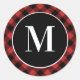 Red Buffalo Plaid Initial Monogram Classic Round Sticker