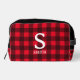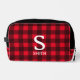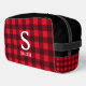 Red buffalo plaid lumberjack pattern personalised toiletry bag gift. Add your own custom name and monogram. Unique Birthday gift idea for men. husband, father etc.