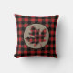 The background on this attractive throw pillow is a red and black buffalo plaid pattern. At the centre is a tan circle banner with a matching red and black plaid maple leaf image. The back of this reversible pillow has the same buffalo plaid print, but not the leaf design. Be sure to see the matching products in our store.