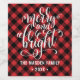 Red Buffalo Plaid Merry And Bright Christmas Wine Label. Rustic buffalo check pattern with hand lettered calligraphy. Personalise this custom design with your own text.