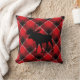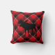 The front of this throw pillow has a black silhouette bull moose image on a pretty buffalo print pattern in red, black, and white. The back of the pillow has the same pattern without the moose image. Perfect for a cabin or woodland home. Thanks to Ephrazy Design for the print graphic.