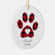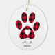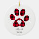Red Buffalo Plaid Paw Print White Heart Ceramic Ornament