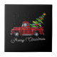 Red Buffalo Plaid Pickup Truck with Tree Merry Chr Ceramic Tile