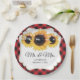 Red Buffalo Plaid Sunflower Mr and Mrs Wedding Paper Plate
