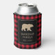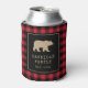Red Buffalo Plaid With Bear Family Name Can Cooler