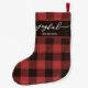 Rustic red buffalo plaid with white joyful script and name personalised Christmas holiday stocking.