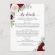 Red Burgundy & Pink Roses Rustic Wedding Details Enclosure Card