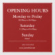 Make your business hours clear and stylish with this customisable Window Cling! Perfect for storefront doors and windows, this reusable cling displays your opening hours with a clean, professional design that catches the eye. Easy to apply and remove without residue — ideal for shops, cafes, salons, and offices.